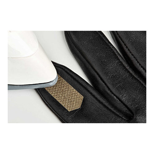 Each pack includes four elongated hexagon modules that match the natural contact area of the fingertip. They are thin, flexible, and adhere well to textiles and most types of leather. For smooth leather, a light surface roughening is recommended to improve adhesion. Lifespan is generally one season, depending on use frequency.