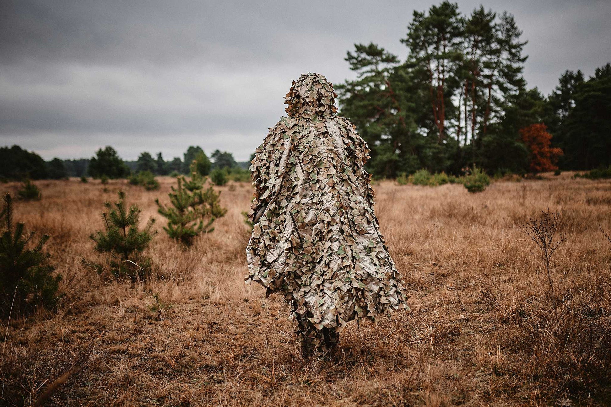 In practical use, InfraGhillie reduces thermal contrast and NIR reflectivity. Effectiveness always depends on environment, weather, and user movement, but the purpose is clear: decrease visibility and buy the operator more reaction time. Weight is balanced to keep the poncho portable while still providing full coverage over gear.