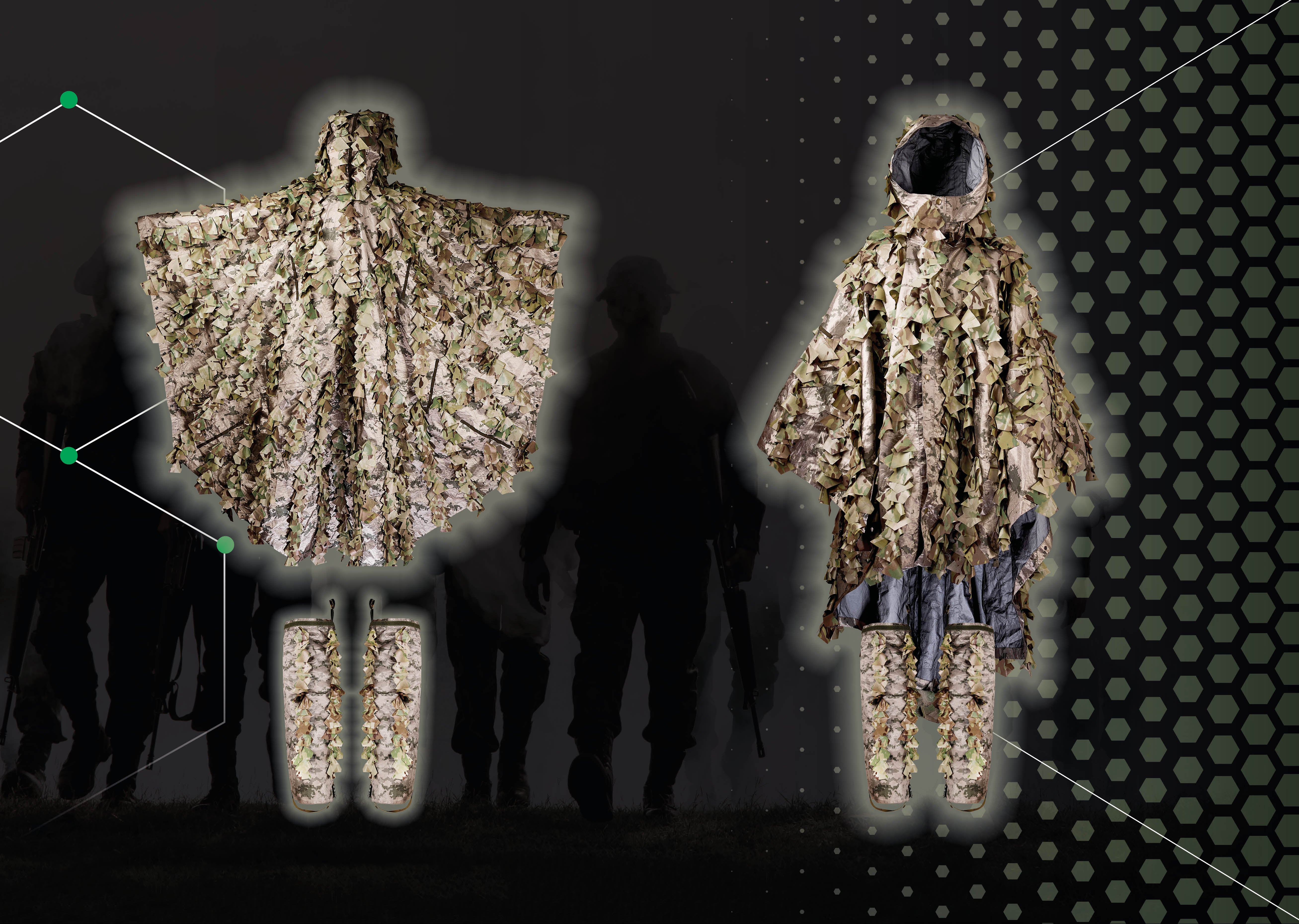 InfraGhillie is a universal poncho designed to reduce the user’s NIR (near-infrared) and thermal signature.