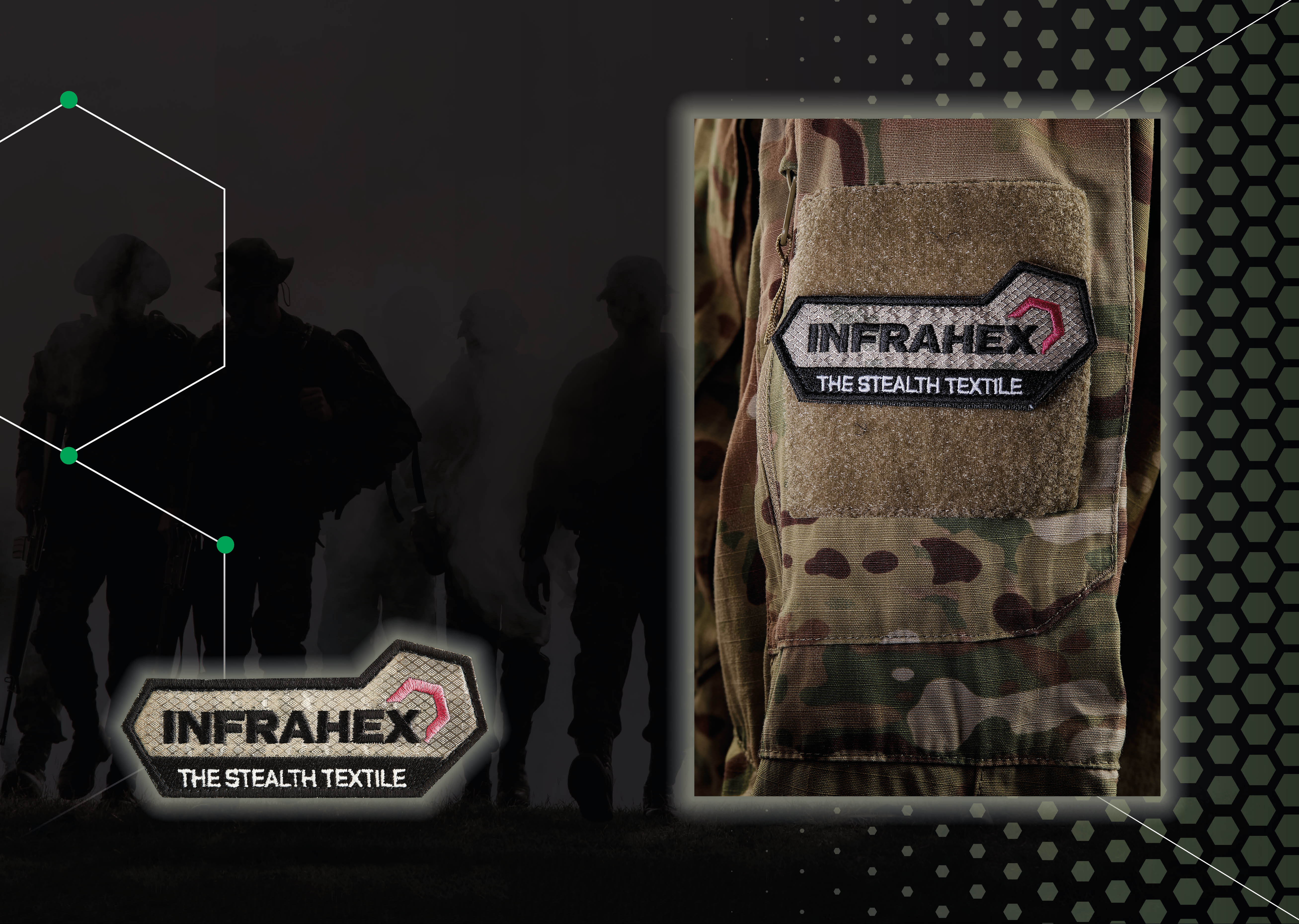 The InfraHex Patch is a simple embroidered patch designed for vests, packs, and any standard loop panels.