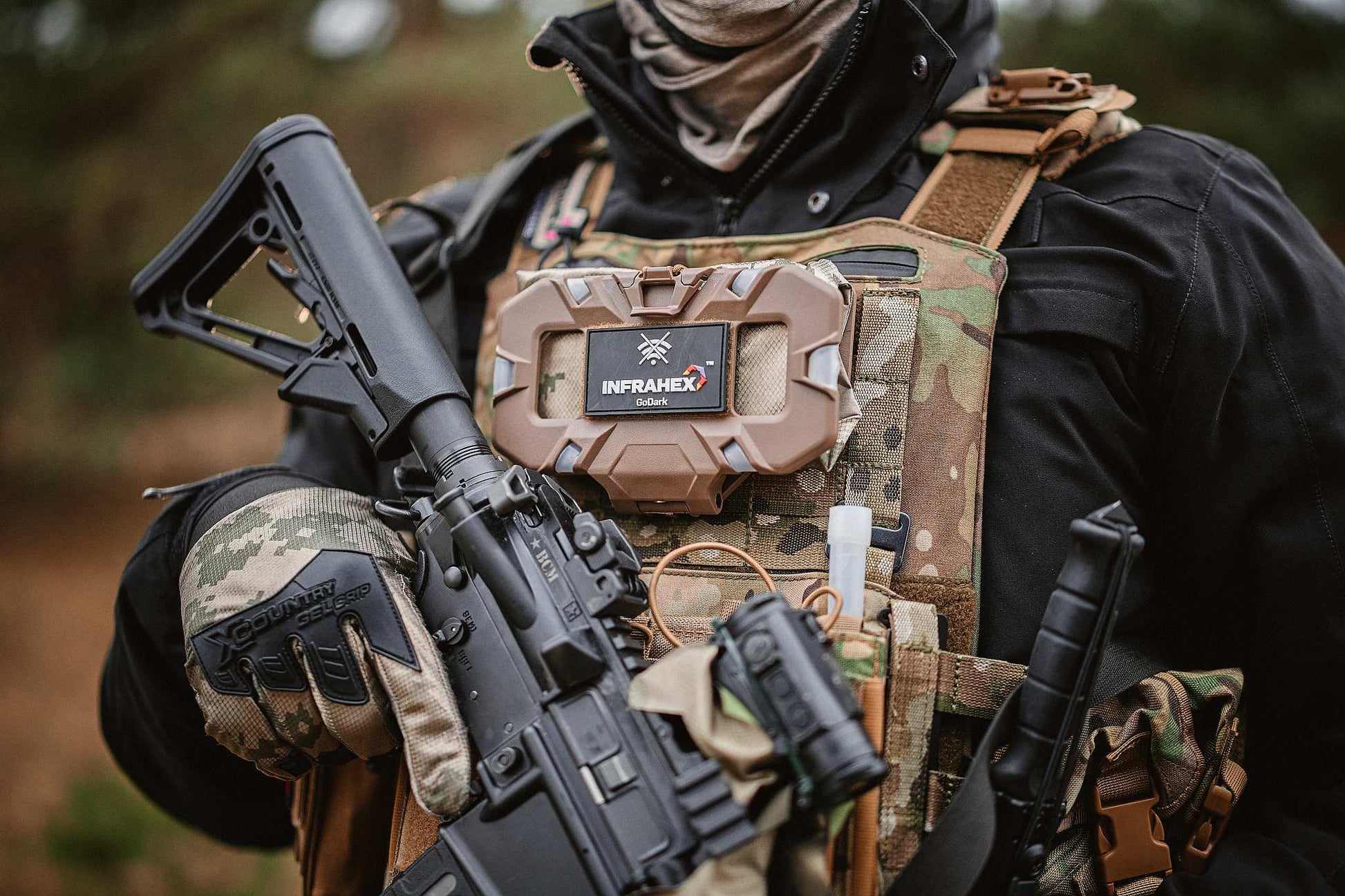 Intel Pouch Chesty mounts directly to MOLLE on the plate carrier’s front panel, staying tight to the chest with no wobble. Controls are designed to be operated with the support hand, without changing your firing grip. The entire construction is quiet and low-profile to eliminate unwanted noise or interference with gear.